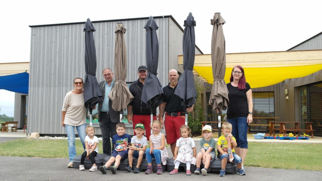 06.2022: Spende von 5 Sonnenschirmen an den Kindergarten Immendorf.